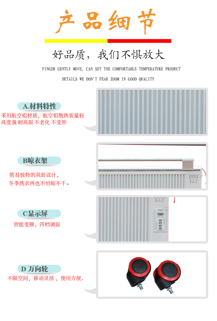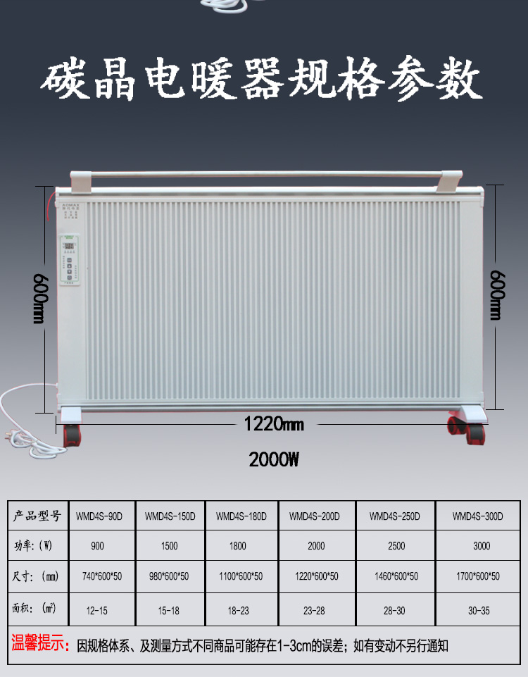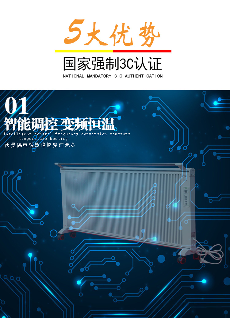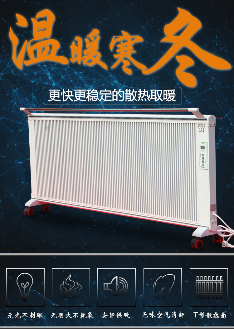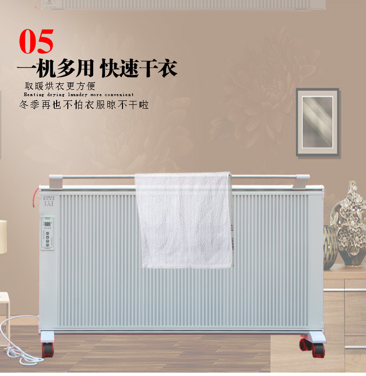 碳晶電暖器具有體積小重量輕、造型美觀大方、結(jié)構(gòu)堅固耐用,無需增加任何配件,可隨意變換移動使用位置等特點。發(fā)熱體,可隨意移動,任意放置,且可隨意攜帶,是家用采暖的創(chuàng)舉。